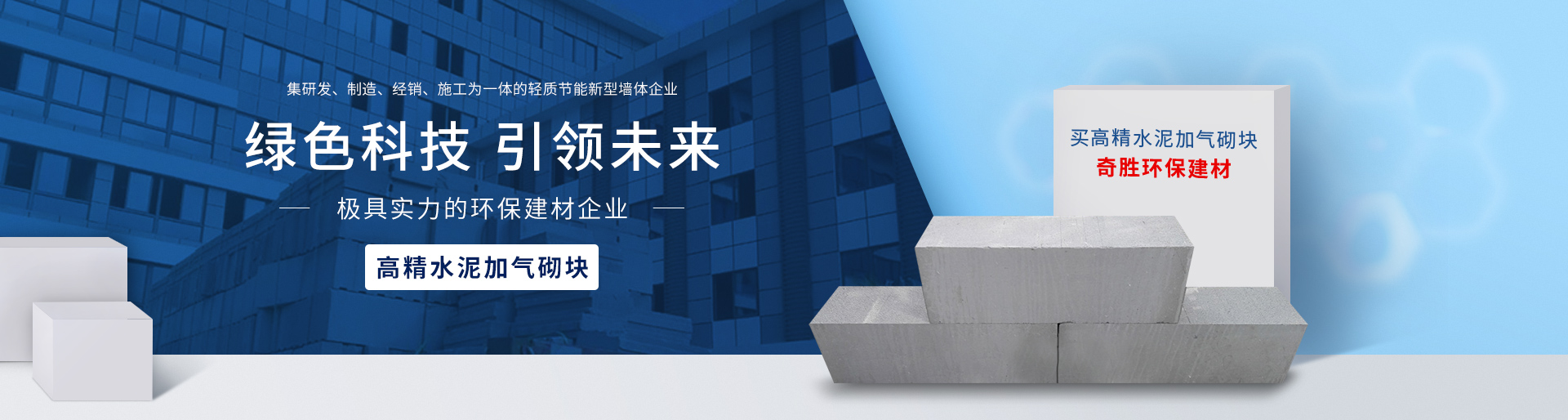 福建奇勝環(huán)保建材科技有限公司隨著可開發(fā)利用的土地資源日趨減少及節(jié)能降耗意識的增強,實心粘土磚逐漸在全國各地被禁止使用,非粘土類新型輕質墻體材料成了較為理想的替代產品。為適應建筑市場的需求,福建奇勝環(huán)保建材科技有限公司研發(fā)生產了巖安牌系列產品:巖安牌新新型高精水泥加氣砌塊(凹凸型)、巖安牌益膠泥等。